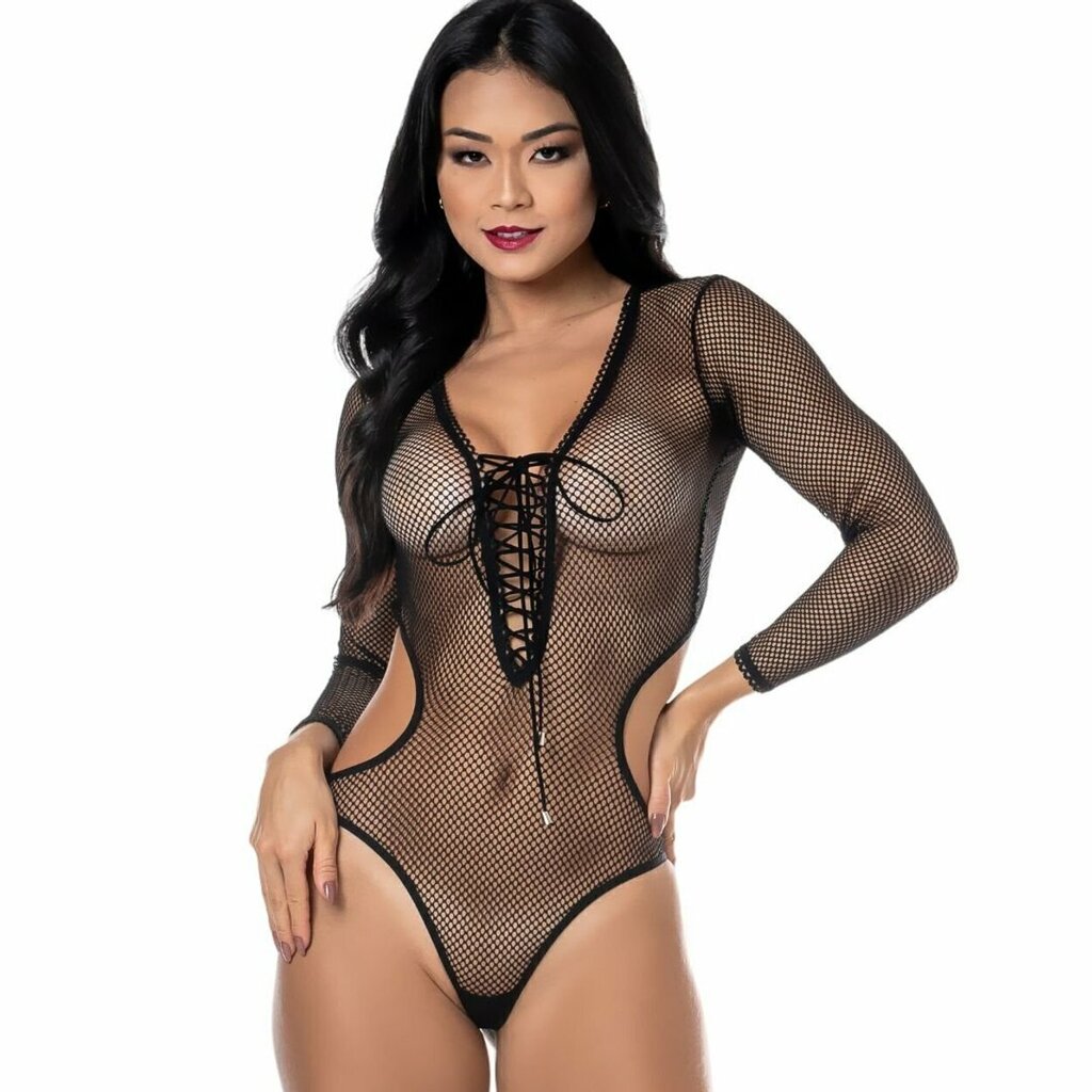 Fabricado com material de altíssima qualidade, o body é estilo arrastão com manga longa. As laterais são finas e com regulagem, possui transparência que destaca e valoriza suas curvas. Ele acompanha meias e possui um fita para regulagem no busto. O Body Dominatrix é a forma de você demonstrar poder e sensualidade... Vista-se para dominar! 😏
