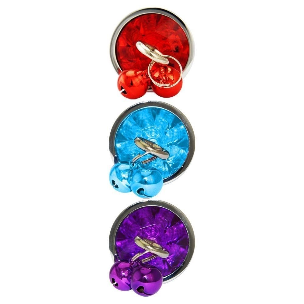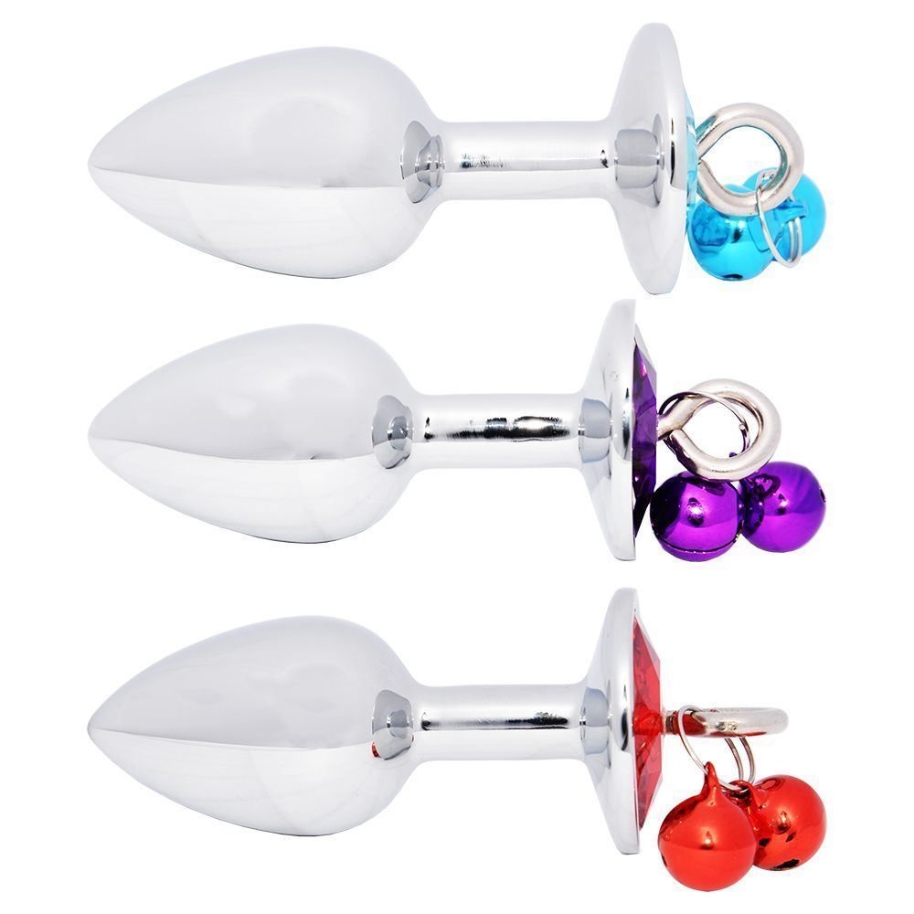 Plug anal Majestic em formato cônico com pedraria de cristal na base e um pequeno sino de metal colorido, extremidade estreita e corpo que vai aumentando a largura gradualmente, feito em alumínio fundido e polido à mão.